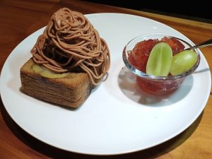 『今月のケーキ(11月)』 2025年10月31日 11月のケーキは…当店の秋の定番→チョコレート・パイロットFumiko Katayoseさんの【かふぇおかモンブラン】です。 「茨城県産の栗」の渋皮煮をラム酒香るコーヒーケーキに閉じ込め、「フランス産マロンクリーム」をご注文いただいてから、小田巻で巻き合わせる特製のモンブラン、和洋の栗の二重奏をお楽しみください。